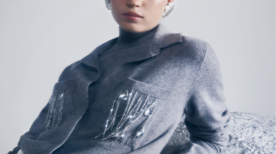Falconeri lancia una nuova limited edition divisa in tre drop con un evento nel flagship store romano. Il primo drop "Cristalli d'Inverno" comprende tre capi in morbido cashmere grigio perla - maglia, pantalone e tuta intera - che sono impreziositi da raffinate applicazioni scintillanti. Ogni pezzo può essere indossato da solo per un look minimal ma sofisticato, oppure abbinato agli altri per un outfit coordinato che esprime eleganza e classe. Il secondo drop "Notte Stellata" celebra la magia del cielo notturno con capi in cashmere, impreziositi da applicazioni luminose e un effetto degradé nei toni del nero, blu e fiocco di neve. Tra i protagonisti della collezione, il cappotto e la giacca, senza tralasciare la maglia con cascata laterale e spalla scoperta. Completano la collezione accessori comprensiva di sciarpa, cappello e guanti, arricchiti da dettagli luminosi, mentre la polo e il cardigan sono impreziositi da bottoni gioiello. Il capo più versatile è, senza dubbio, lo smanicato reversibile in cashmere, con un colletto gioiello che ne esalta la funzionalità, rendendolo un elemento di stile impeccabile per ogni occasione. Infine il terzo drop "Giardino Incantato" celebra la bellezza dei fiori con una collezione in cashmere che porta un'allure di primavera anche nelle giornate più fredde. Il cache-coeur, il cardigan e il pantaloncino, declinati nella tonalità fiocco, sono impreziositi da luminosi patch floreali che infondono femminilità e romanticismo.