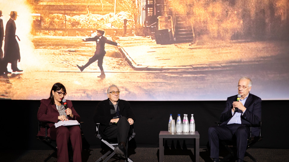 (di Francesco Gallo) Il rapporto con Sergio Leone, la musica di Ennio Morricone, la dimensione epica cinematografica e, infine, l'odiata America di Trump. Questi solo alcuni temi trattati da Robert De Niro intervistato da Walter Veltroni al cinema Moderno di Roma in occasione della proiezione di 'C'era una volta in America' di Sergio Leone in 4k per gli studenti di cinema, ultimo atto de Il fuori sala di Alice nella città. Cosa è stato questo film? "Per Sergio Leone era soprattutto un atto d'amore e ho avuto la netta sensazione che non voleva finisse mai per non provare quella triste situazione agro-dolce che si avverte quando abbandoni un set e lasci tante persone che forse non vedrai più". Chi era Leone? "Un uomo soprattutto pieno di senso di umorismo, una persona simpatica che non ostentava nessuna pretesa, era insomma fantastico". L'America è ancora capace di fare film lunghi ed epici? "Penso di sì. È il caso di Una battaglia dopo l'altra di Paul Thomas Anderson, che non ho ancora visto, ma di cui mi hanno parlato tutti bene. Comunque dipende alcuni vengono realizzati per esempio per lo streaming, per essere suddivisi in tanti episodi. Certo questo è un modo diverso di raccontare la storia, ma credo che il film epico sia ancora possibile penso ad esempio a registi come Martin Scorsese". Quanto pesa la musica di Morricone in un film? "Pesa molto ve lo assicuro. Ho avuto la fortuna di aver lavorato in quattro film con le sue musiche e quindi conosco la differenza". Il suo rapporto col cinema italiano? "Da ragazzo a New York ho visto tanto cinema che veniva dall'Italia penso a Federico Fellini, ad Antonioni, a Pasolini tutti autori che ho sempre guardato con ammirazione e che ho amato tantissimo". L'America di oggi le piace? "Che dio ci aiuti! Non si può continuare ad usare la parola speranza, ma bisogna reagire così come si è cominciato a fare, per esempio, a New York con le elezioni del nuovo sindaco, ma anche in Virginia e in California. Non si può permettere che questa amministrazione bullizzi tutto perché credo sia fondamentale rispondere. Vogliamo insomma che ci venga restituito il nostro Paese e non venga trasformato come sta succedendo in una dittatura fascista".